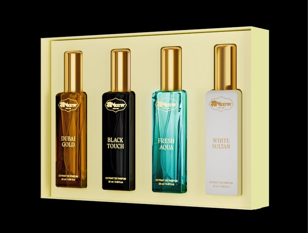 Experience a perfect blend of elegance, tradition, and long-lasting aroma with the Golden Meena Combo (20ml – Pack of 4) from A&J Perfumer. This exclusive fragrance combo is thoughtfully curated for perfume lovers who enjoy variety, depth, and premium quality in every drop. Each bottle in this pack contains 20ml of carefully crafted perfume oil, offering a rich and captivating scent experience suitable for all occasions.At A&J Perfumer, we believe fragrance is more than just a scent—it’s an expression of personality. The Meena Combo features four distinct and harmonious fragrances that cater to different moods, seasons, and styles. From soft floral notes to deep woody and musky undertones, this combo ensures a versatile fragrance wardrobe for daily wear, festive occasions, office use, and special gatherings.